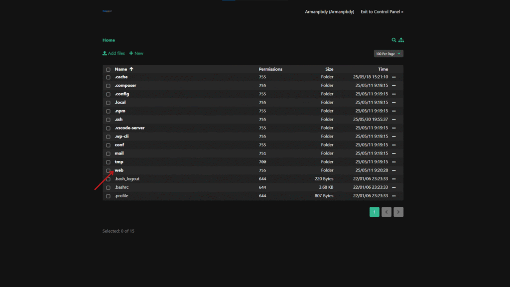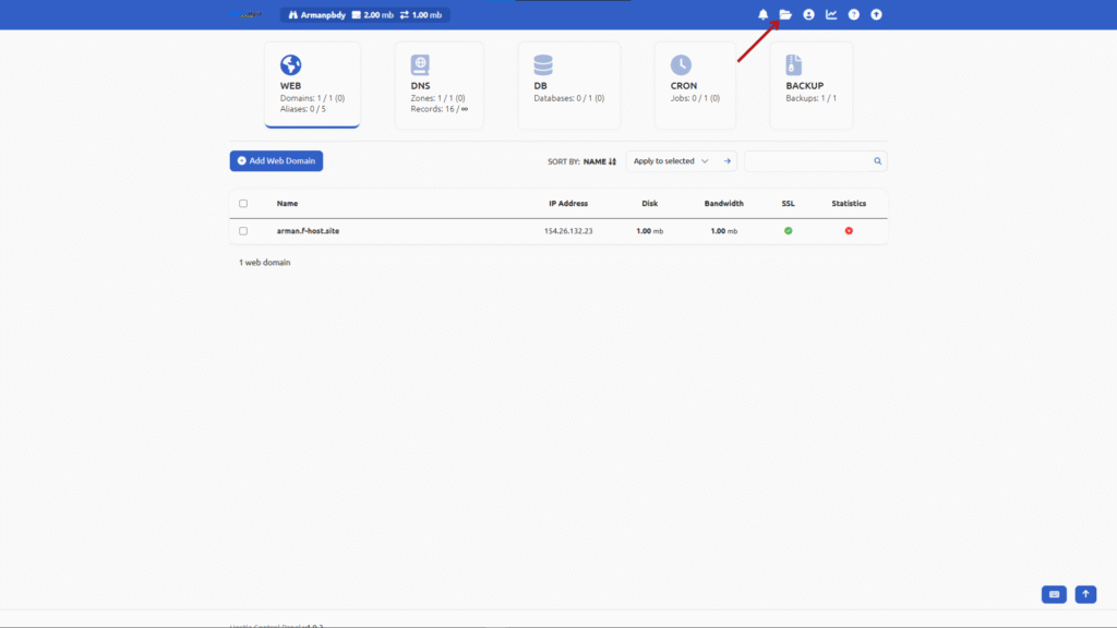 klik logo file mannager yang berada di pojok kanan atas, setelah itu kamu akan masuk ke halaman file manager, klik folder web untuk menuju file root.