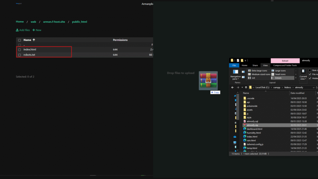 setelah kamu berada di file public_html, kamu bisa menghapus file default yang ada, dan kamu bisa import file kamu dari folder pc kamu ke hosting cenahost. pastikan file yang kamu import harus di arsip terlebih dahul atau di .ZIP.