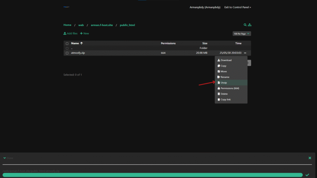 setelah file di import, kamu bisa melakukan unzip. dan website kamu berhasil di import ke hosting CenaHost.